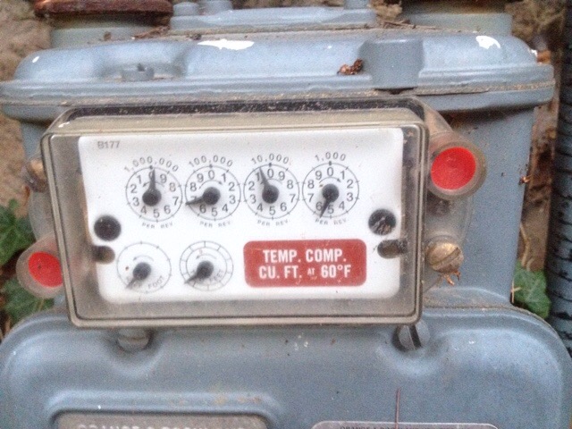 Natural gas is the biggest single category of my carbon footprint – 236 ccf of gas last year works out to 2800 lbs of CO2 at the EPA conversion rate, and my share of that (two of us sharing the house) was 1400 pounds – three quarters of a ton out of my four ton budget. That’s the equivalent of 70 gallons of gasoline.