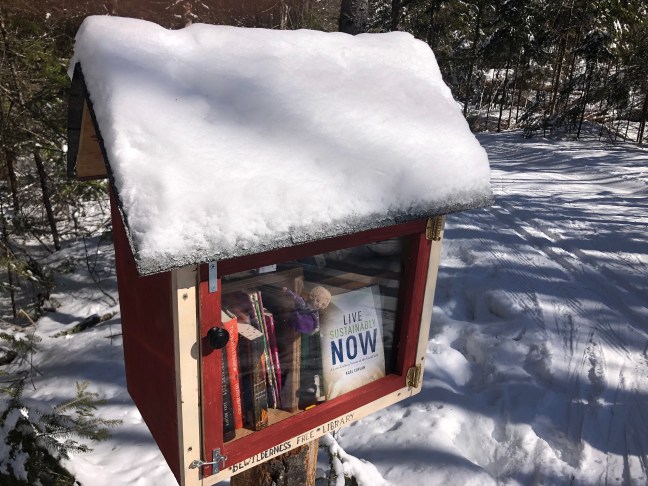 I have been promoting my book Live Sustainably Now by placing free copies in a Little Free Library in the North Woods Wilderness.