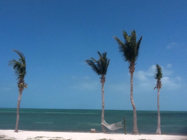 We left West End a week ago Sunday. We had to motor into the tight anchorage at Allen’s Cay (1/2 gallon) since we arrived after dark (not recommended) and needed radar to confirm the passage in (no lights or buoys) and find the anchors boats in the dark. The next day we sailed down to Exuma Cays Land and Sea Park at Warderick Wellls, but we needed the engine to make the last mile into the moorings when the tide turned against as well s the wind. We chose a mooring close to the entrance so we would be able to sail out, and paddled our kayaks in the long mile to the registration office. Next day, we sailed around to a mooring by Emerald Rock (great snorkeling!) and Beryl’s Beach. From there we sailed south to Staniel Cay, and spent another half gallon of diesel maneuvering up to their dock full of mega yachts – they kept us waiting in the tidal channel while they docked one ahead of us. Another half gallon to leave the dock on Friday, and we sailed to Gaulin Island with its deserted beach and iguanas. We made and broke anchor under sail at Gaulin, then sailed through Dotham Cut, A narrow slot in the cays the tide poured in against us from the Exuma Sound. There was just enough wind to stem the tide.