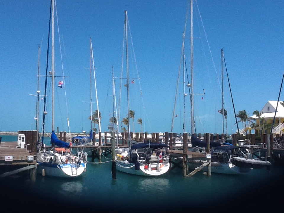 We left West End a week ago Sunday. We had to motor into the tight anchorage at Allen’s Cay (1/2 gallon) since we arrived after dark (not recommended) and needed radar to confirm the passage in (no lights or buoys) and find the anchors boats in the dark. The next day we sailed down to Exuma Cays Land and Sea Park at Warderick Wellls, but we needed the engine to make the last mile into the moorings when the tide turned against as well s the wind. We chose a mooring close to the entrance so we would be able to sail out, and paddled our kayaks in the long mile to the registration office. Next day, we sailed around to a mooring by Emerald Rock (great snorkeling!) and Beryl’s Beach. From there we sailed south to Staniel Cay, and spent another half gallon of diesel maneuvering up to their dock full of mega yachts – they kept us waiting in the tidal channel while they docked one ahead of us. Another half gallon to leave the dock on Friday, and we sailed to Gaulin Island with its deserted beach and iguanas. We made and broke anchor under sail at Gaulin, then sailed through Dotham Cut, A narrow slot in the cays the tide poured in against us from the Exuma Sound. There was just enough wind to stem the tide.