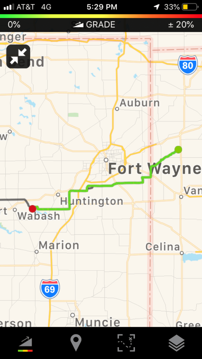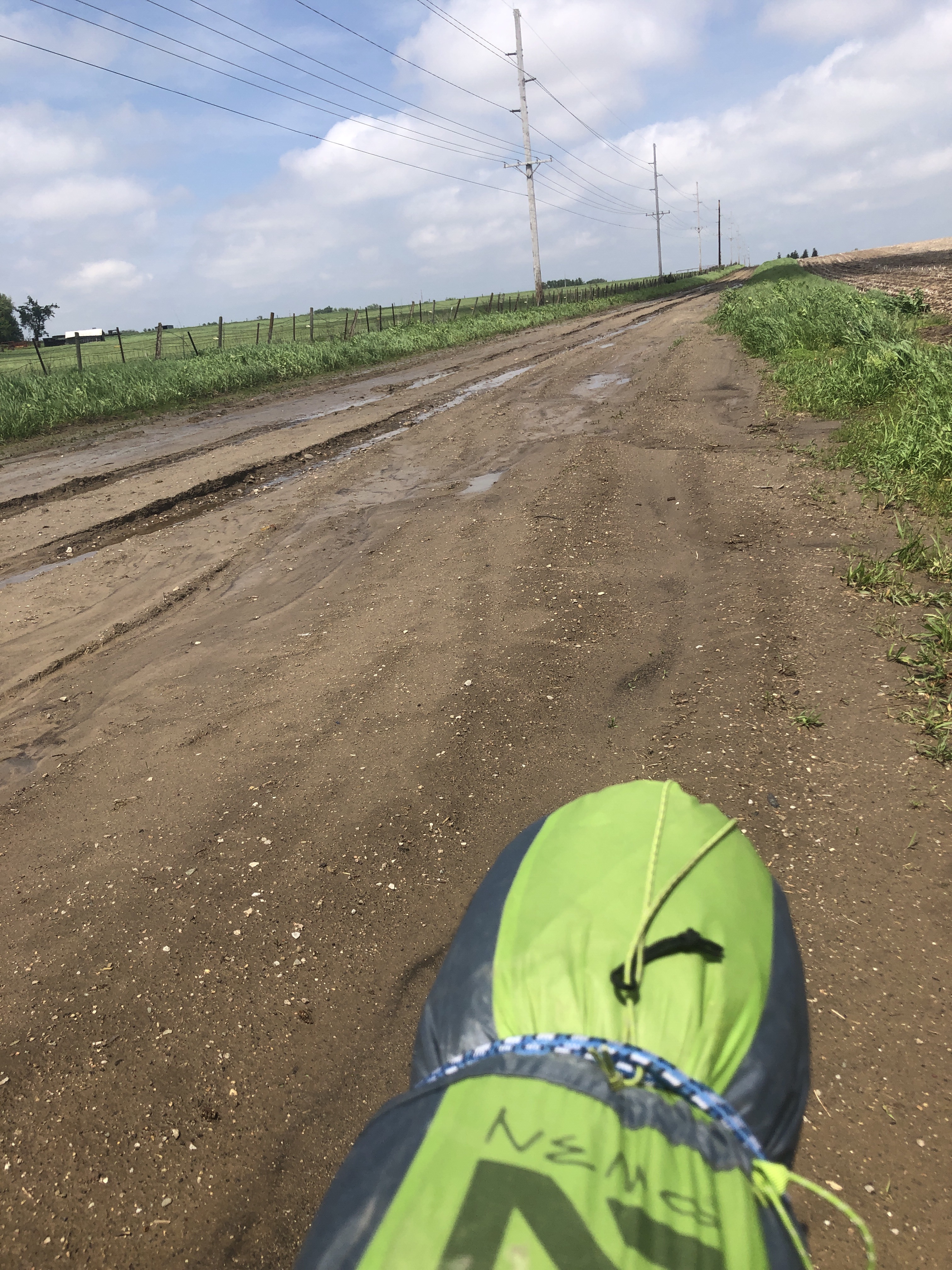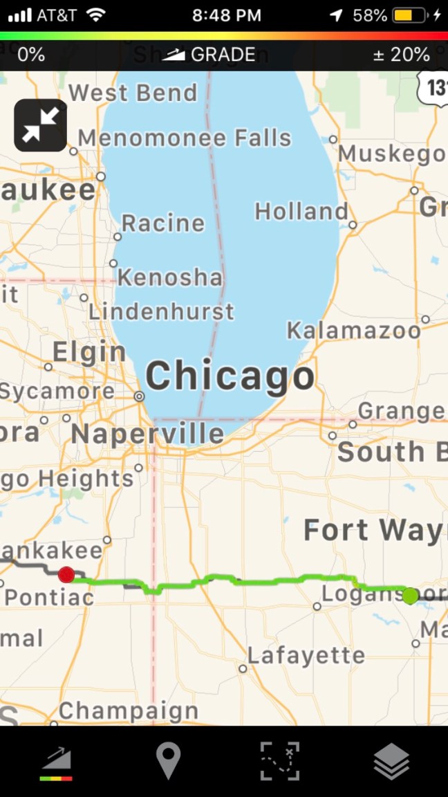 My left hand is still weak, but it has been getting a little stronger – I like to think it is because of all the exercises I have come up with. I can work the left gear shift with my fingertips again. Every evening I go through the routine of unwrapping the guitar (it’s wrapped in my sleeping pad) and trying to fret a few chords, then giving up in frustration. I almost put the guitar in a box and sent it home when I passed the FedEx place in Cedar Rapids. But that seemed like an expensive option for a worn guitar. This morning, after a night’s rest, I could fret a C chord, so maybe there is still hope.