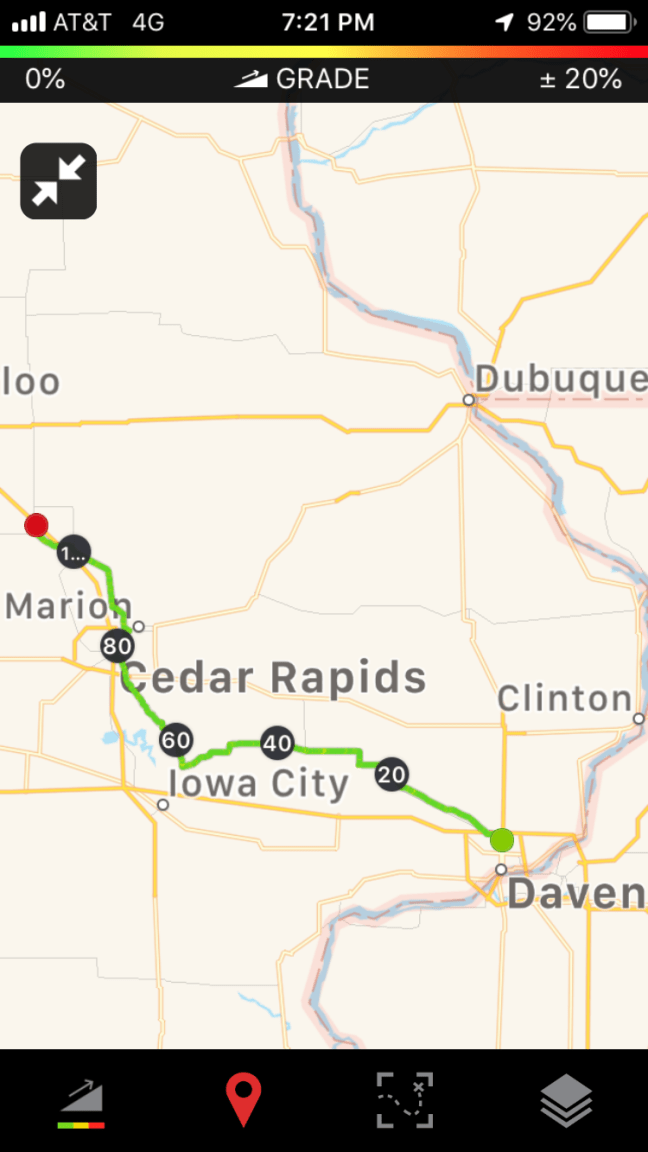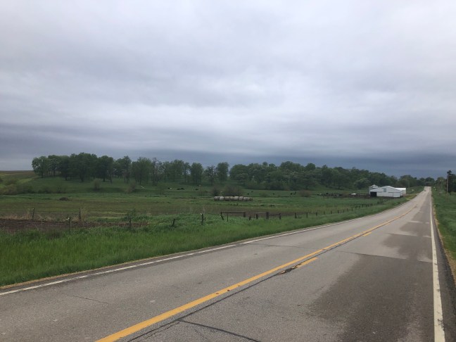 As promised by Owen yesterday, today’s ride was mostly quite flat, except where the road dropped into deep river valleys like the Des Moines river. So it was easy riding, mostly. I saw a few large hog CAFOs – some quite unlucky pigs. You really can hear their squeals of anguish all the way from the road.