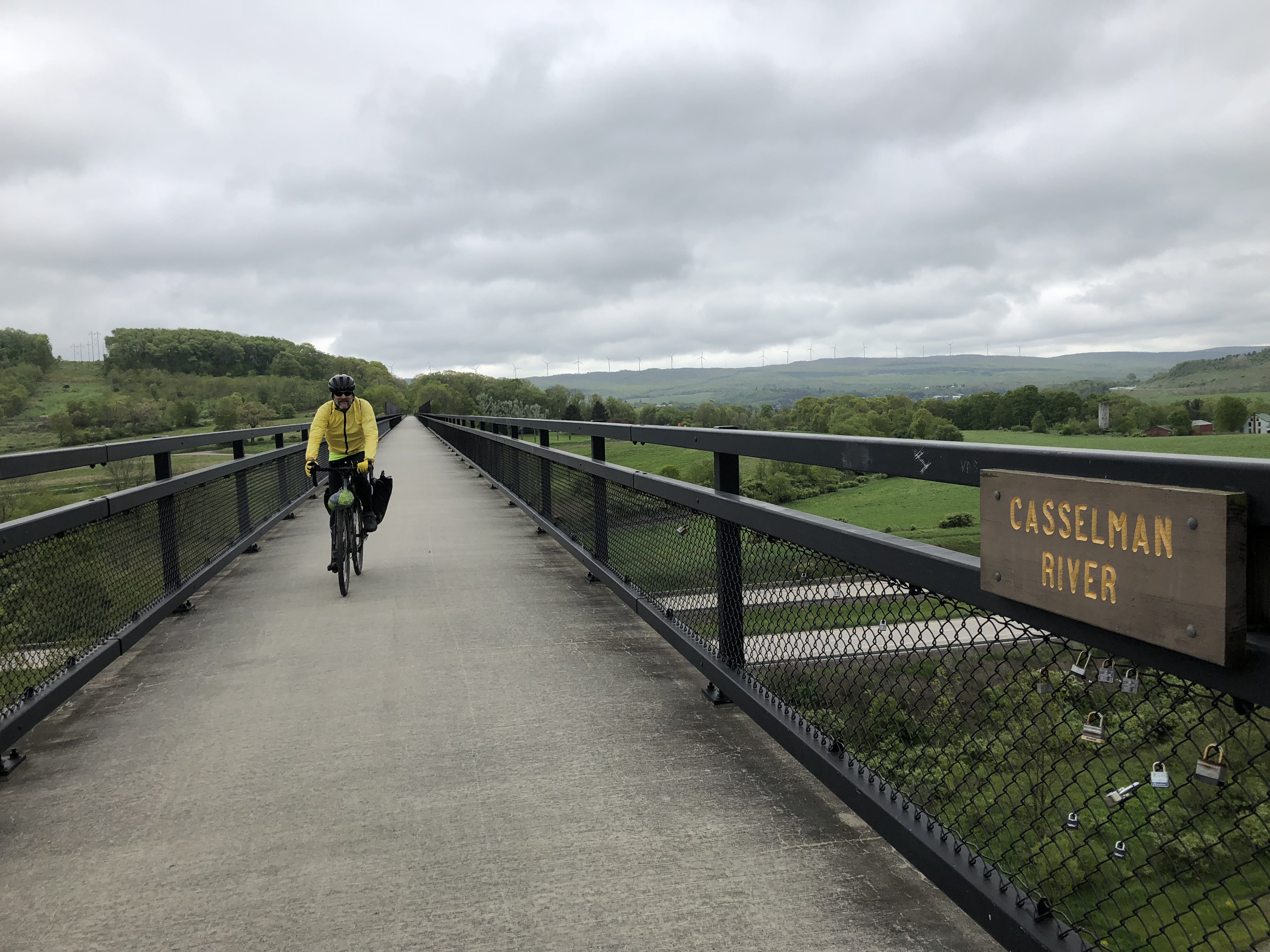 I crossed into Ohio at mile 45, and the road got bumpier. Pennsylvania,s industrial landscape had long since faded into countryside of dairy farms, woods, and meadows, I did my grocery shopping in Columbiana Ohio at the last supermarket I would see before the campsite, and ended up eating l7nch at Taco Bell because I managed to miss all the more local restaurants and wanted to make just one stop. My knees do better if I avoid multiple stops.